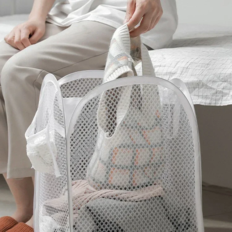 Folding Dirty Laundry Sorting Basket Washing Frame Bathroom Cloth Mesh Storage Bag Frame Bucket Laundry Organizers Storage Pouch