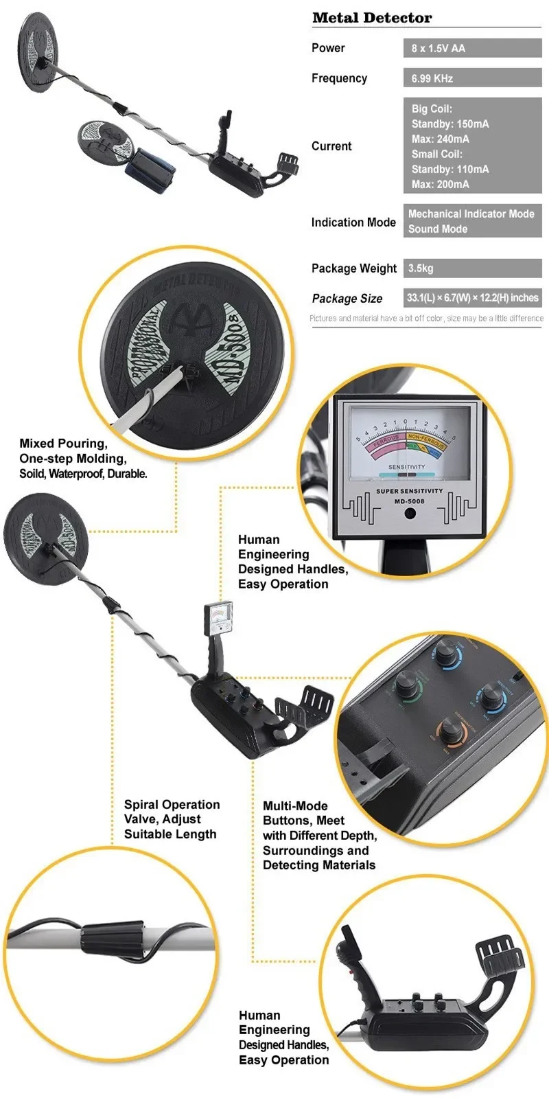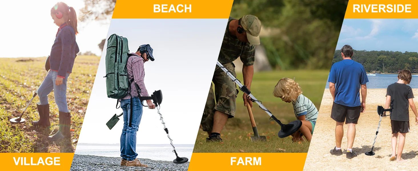 Apply in gold/silver/coin/metal/cultural relics detection in desert, beach, grassland, archaeological site, etc.Detecting metal objects buried underground. Widely used in security check, professional treasure hunting, material check etc.
