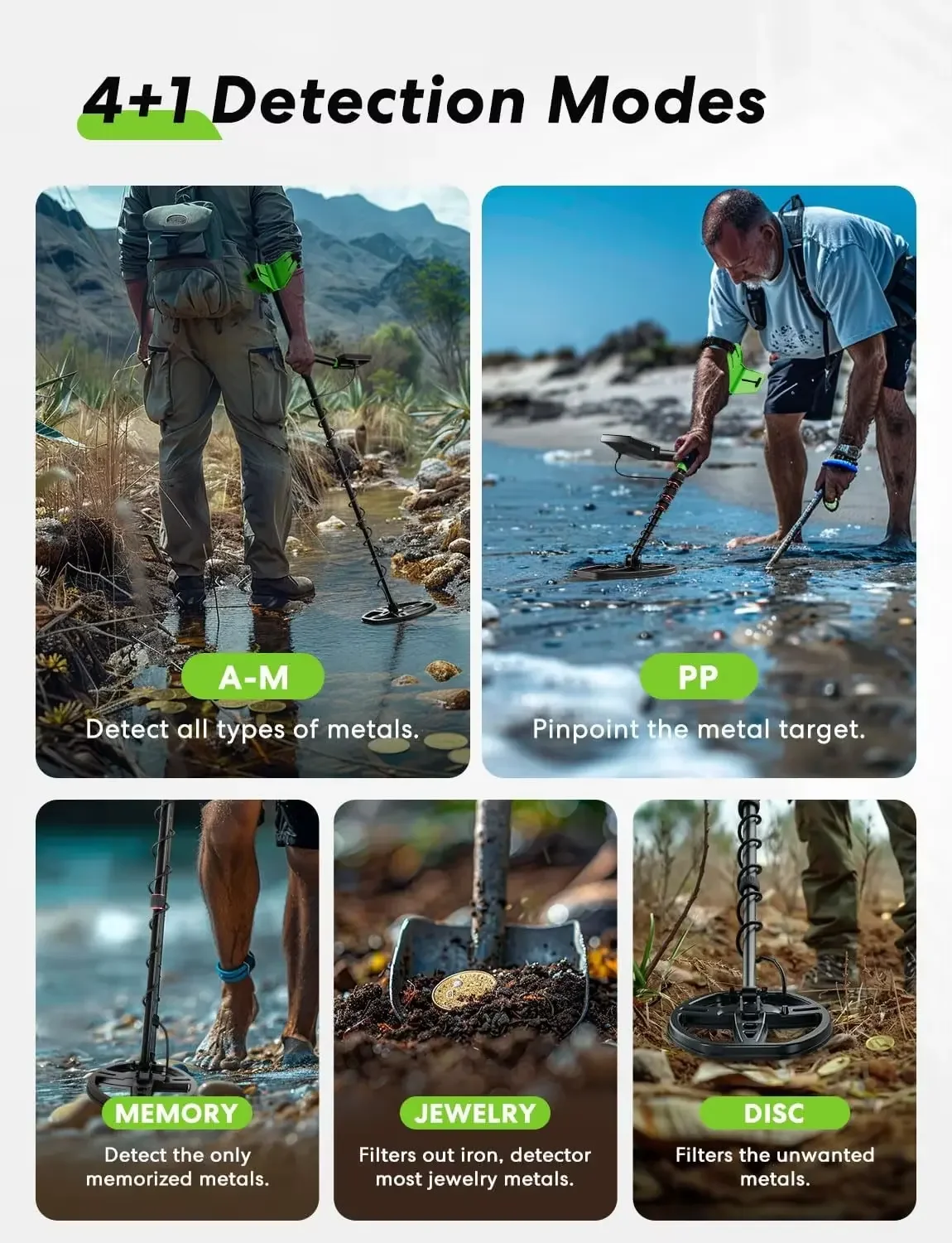 1, TOP METAL DETECTOR FOR ADULTS, The M55B gold detectoris an exciting new addition for both professionals and enthusiasts. Offers 5 upgraded modes including Pinpoint Mode, All metal, Discrimination, Memory, and Jewelry. Innovative Memory Mode remembers one kind of metal and only detects that specific type. Locate exactly what you want in far less time.