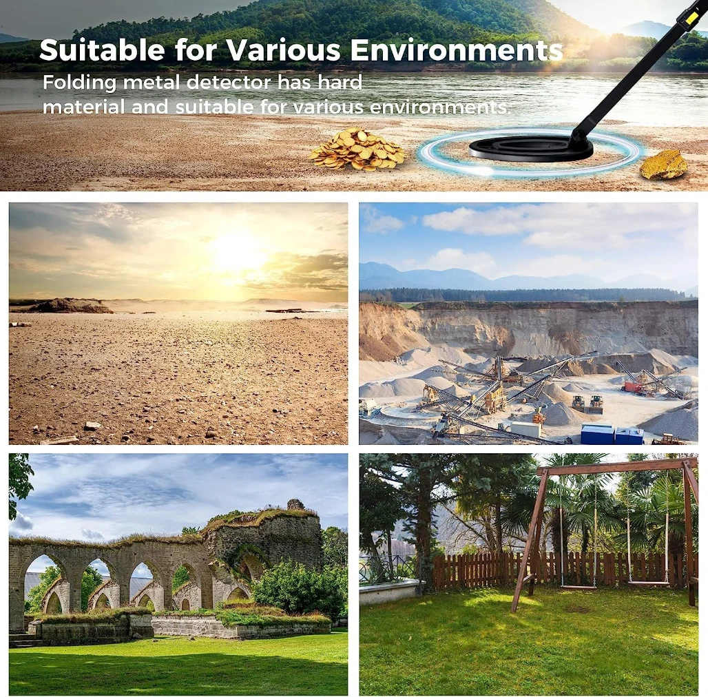 Apply in gold/silver/coin/metal/cultural relics detection in desert, beach, grassland, archaeological site, etc.Detecting metal objects buried underground. Widely used in security check, professional treasure hunting, material check etc.